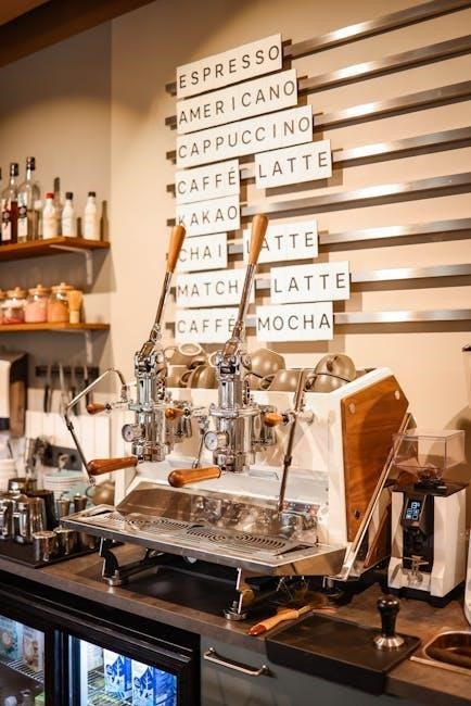 This manual will guide you through each step, from initial setup and safety precautions to mastering brewing techniques and maintaining your machine. Refer to pages 4-6 for a comprehensive overview of the machine’s features. Understanding these features will unlock the full potential of your Calphalon espresso experience, allowing you to create café-quality beverages in the comfort of your kitchen.